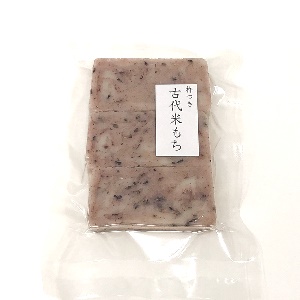 白米に比べ、たんぱく質やビタミン、ミネラルが多く含まれるといわれる古代米を使用した杵つきもち。添加物を一切入れず、もち米と古代米だけで作る希少な逸品です。